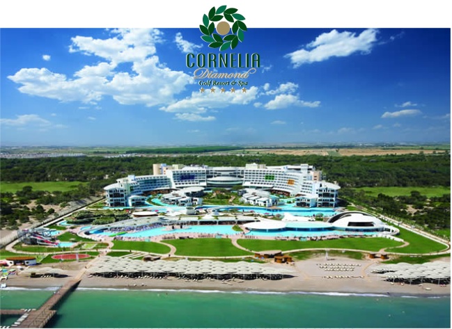 Superlyxiga Cornelia Diamond beläget vid havet, med 12 000 kvm pool, ultra all-inclusive